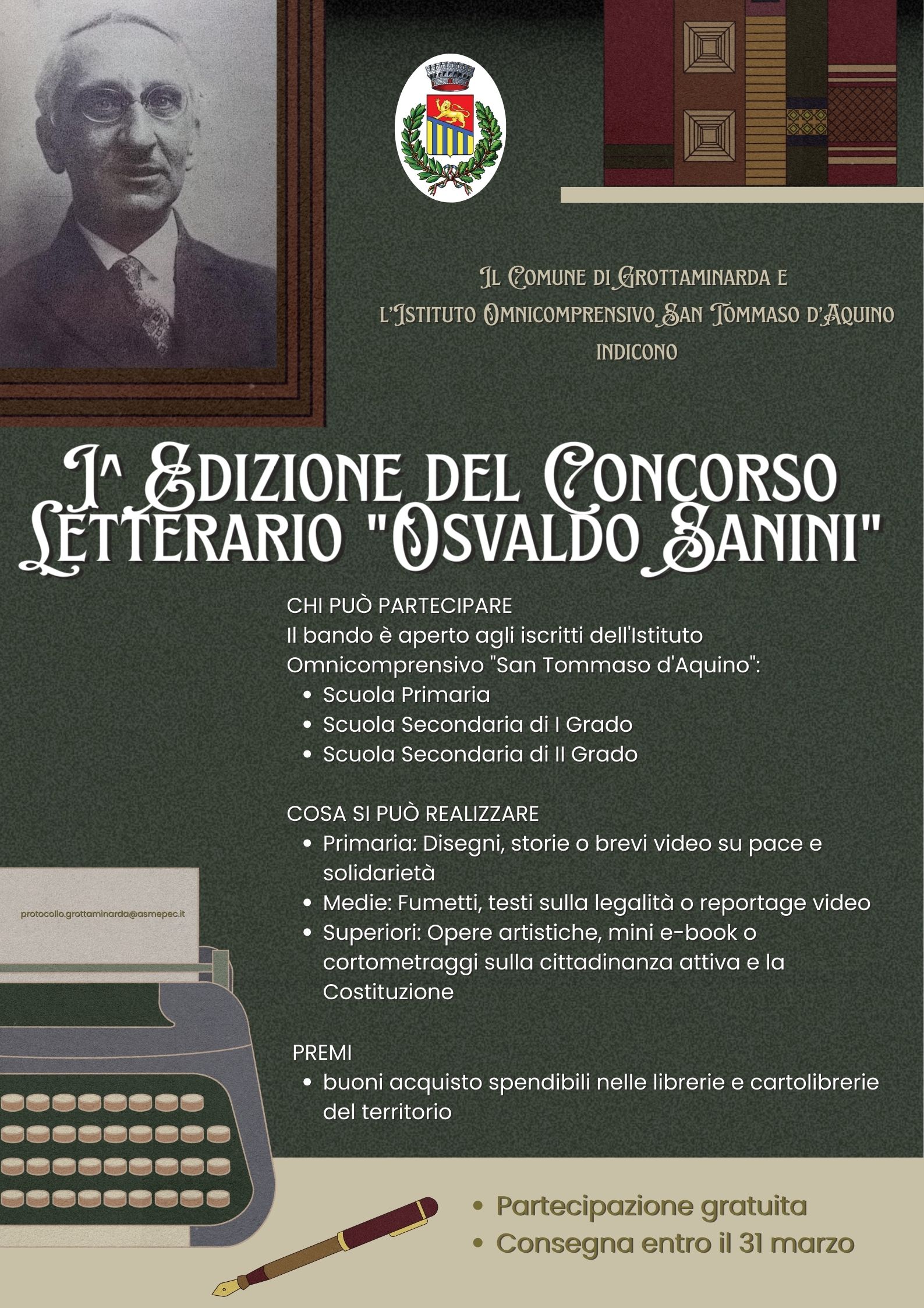 Al via la preannunciata I^ Edizione del Concorso Letterario "Osvaldo Sanini", un’iniziativa del Comune di Grottaminarda in collaborazione con l'Istituto Omnicomprensivo "San Tommaso d'Aquino".